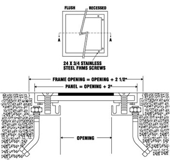 The KAFA is available in a variety of panels – recessed 1/8″ for resilient tile, smooth, abrasive coated and embossed diamond pattern. Frames are easy to install and are sealed with a rubber cork strip.
