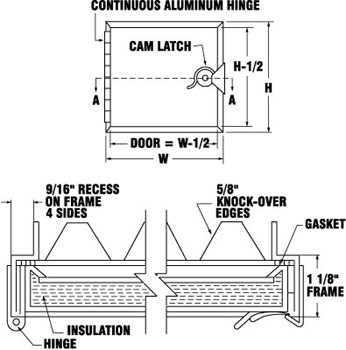 Duct doors (KCD) are removable and furnished with double cam latches. Frames are easily attached to duct with notched knockover tabs.